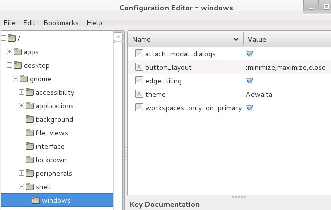 Kurulum tamamlandıktan sonra system tools un altında bulunan configuration editor u açıyoruz. Editörü açtıktan sonra desktop->gnome->shell->windows yolunu izleyerek button_layout a çift tıklamak.