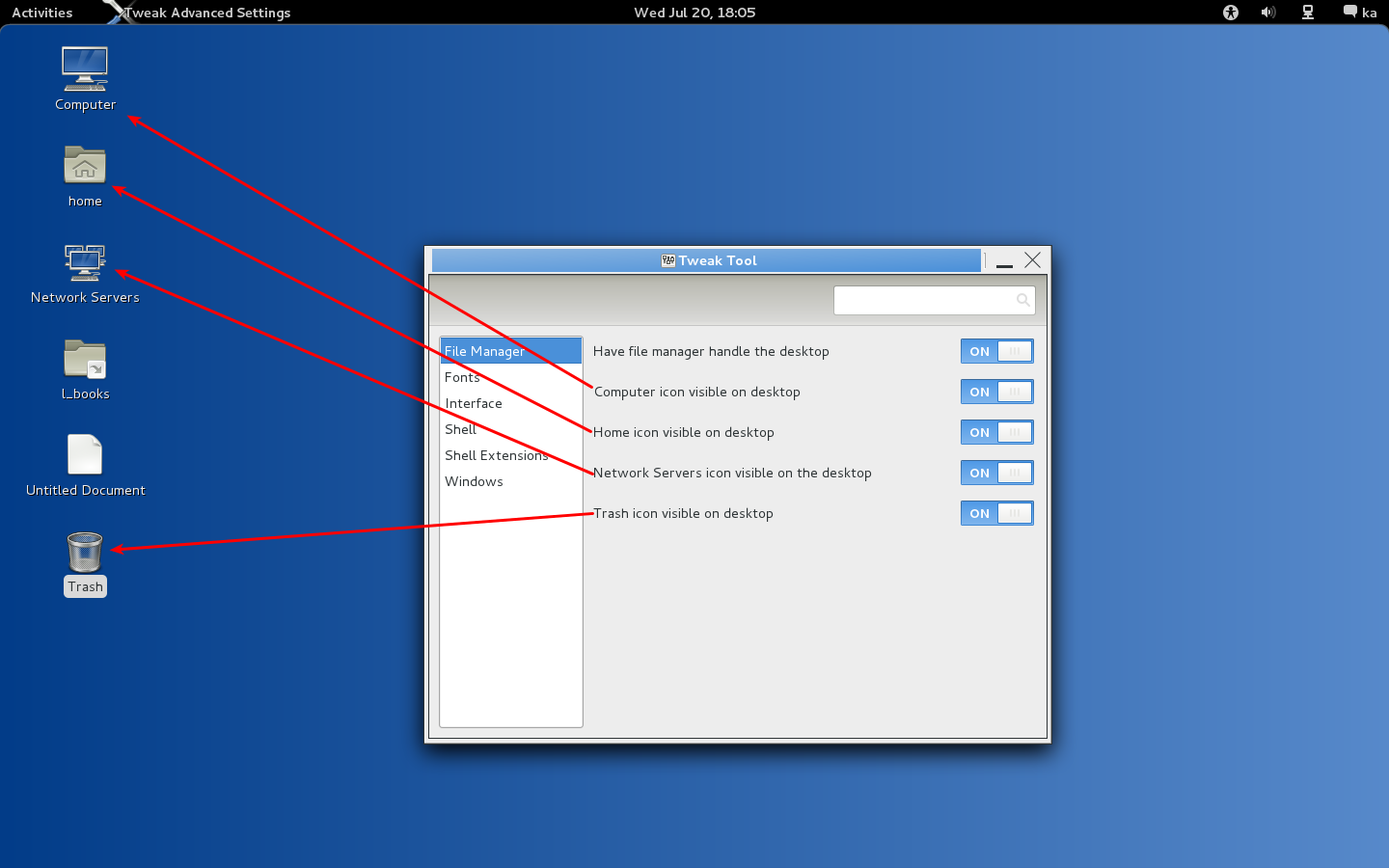 Bildiğiniz gibi Fedora 15 ile birlikte Gnome 3 gelmekte. Gnome 3 kullanırken en sıkıntı çektiğim nokta Gnome 2.x deki gibi masaüstüne klasör, kısayol vb ikonları ekleyememek oluşuydu.Bunun üstesinden gelmek için Fedora depolarında olan gnome-tweak-tool adındaki küçük programı kurmanız gerekiyor.