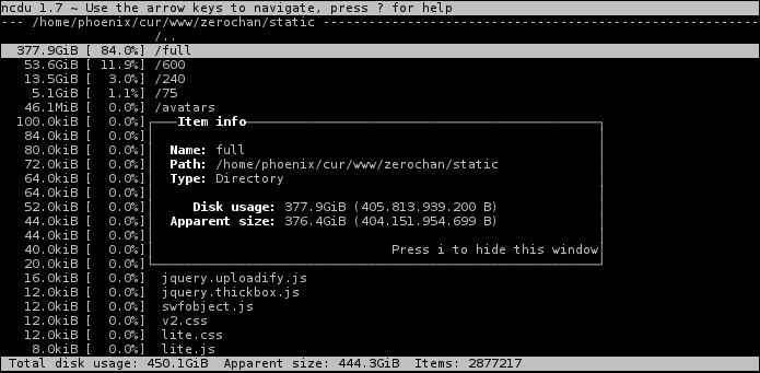 Ncdu, komut satırı üzerinden, disk kullanımını gösteren, hızlı, yön tuşları ile dizinler içerisinde gezinebildiğiniz, komut satırı aracıdır. En güzel tarafı “/” dizininde “ncdu” komutunu çalıştırdığınızda, tüm alt dizinleri de hesaplayarak, yön tuşları ile alt dizin ve üst dizinlerde tekrar dizin kullanımını hesapamaya gerek kalmadan gezebilmenize olanak vermesidir. Bu sayede “du” komutunda olduğu gibi, “/” dizinindeki dizinlerin boyutunu hesaplayıp, bir alt dizinde tekrar “du” komutunu çalıştırmanıza gerek kalmamakta.