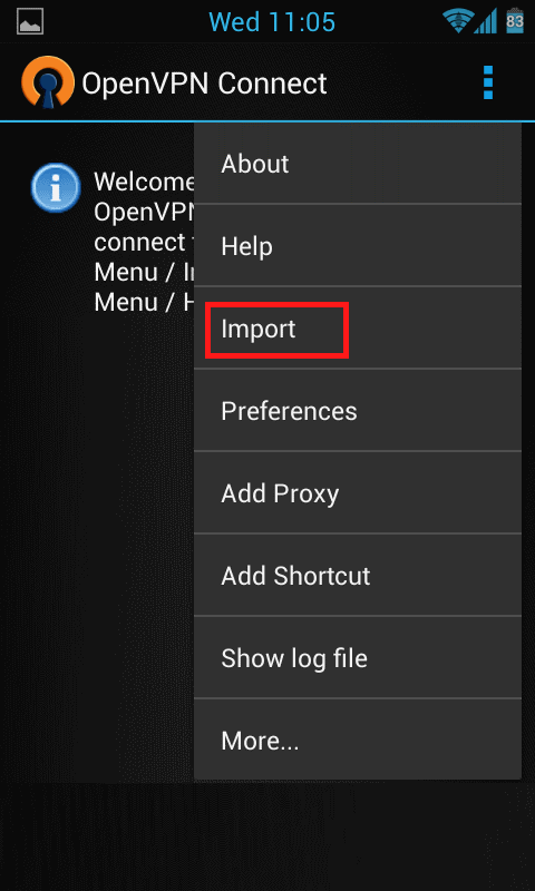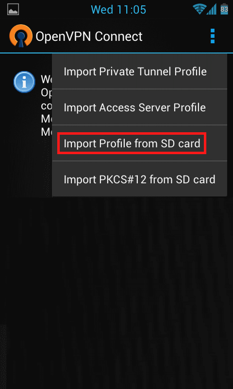 android.ovpn dosyasını telefonumuzun SD kartına yükledikten sonra aşağıdaki resimdeki gibi ekliyoruz.