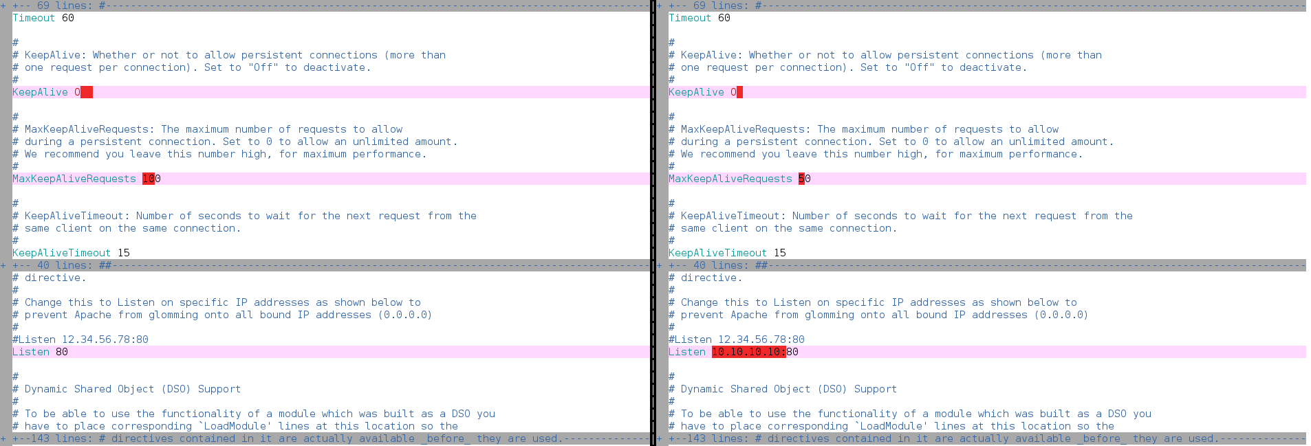 # vimdiff httpd.conf httpd.conf.rpmsave